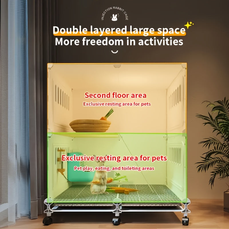 [1pc Deluxe Pet Cage Villa] 1pc Deluxe Iron Alloy Small Animal Cage Villa, Stainless Steel Pet Habitat with Wheels, Ventilated & Splash-Proof Outdoor Enclosure for Rabbits, Hamsters, Guinea Pigs