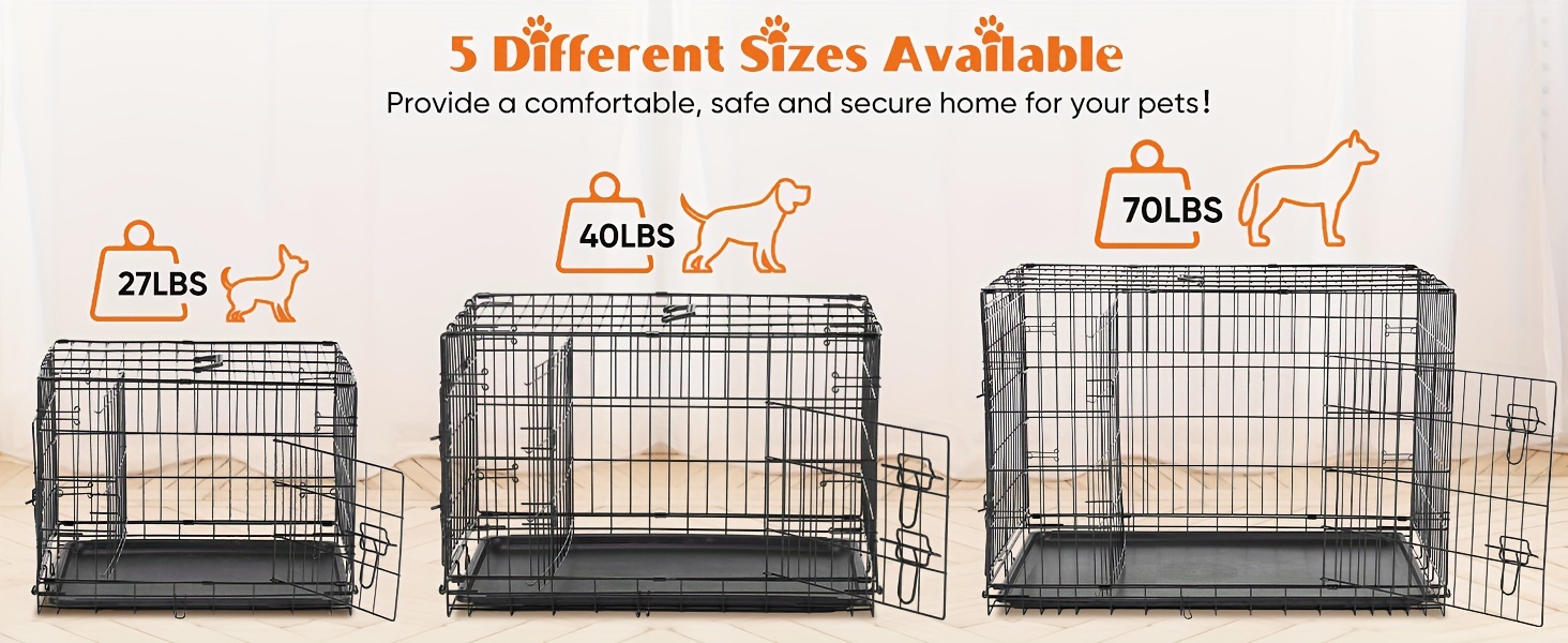 Double-Door Dog Crate: Foldable Black Metal Pet Cage with Divider Panel, Removable Tray and Portable Indoor-Outdoor Handle