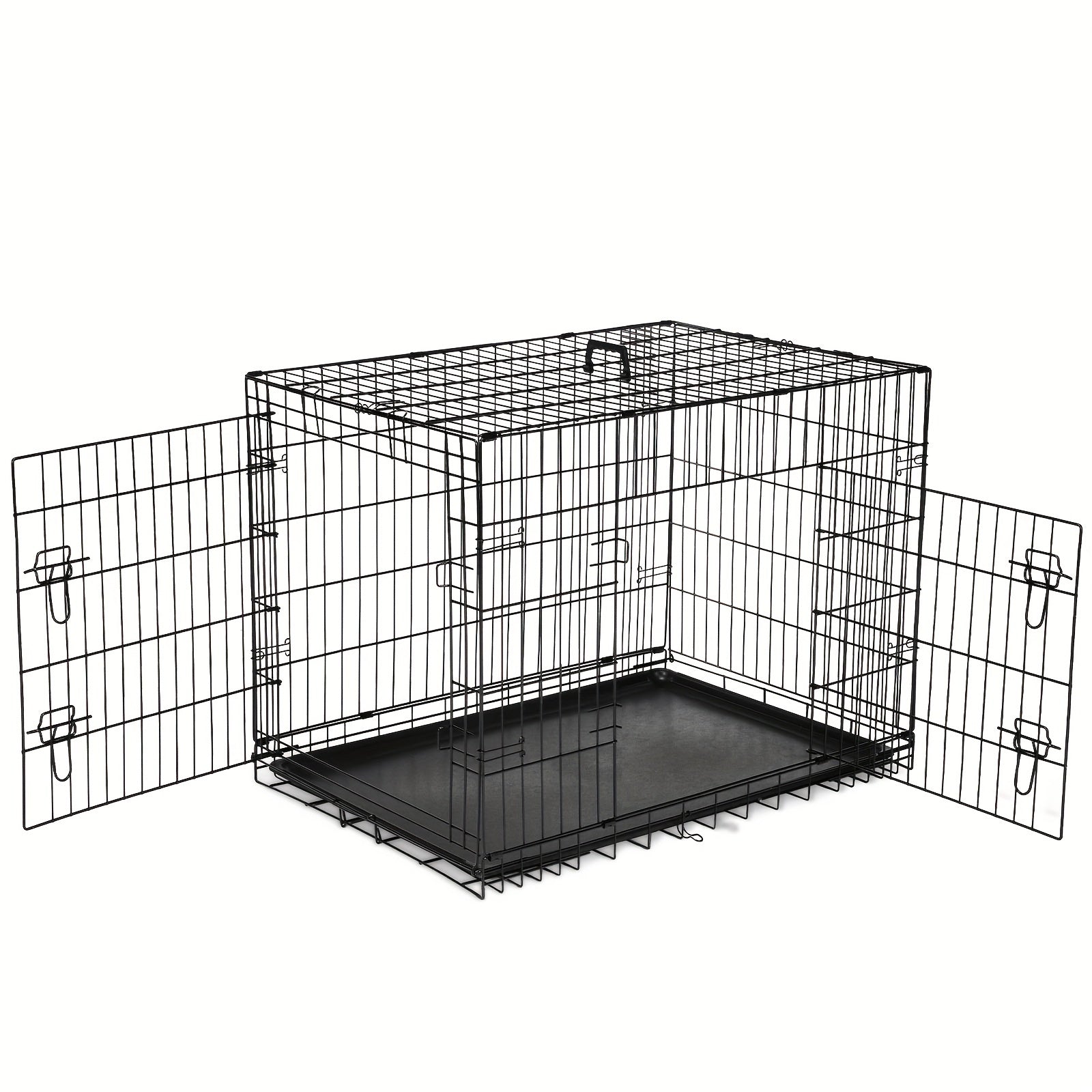 Double Door Folding Metal Wire Dog Crate with Divider Panel - Spacious, Leak-Proof, and Portable Pet Kennel for Indoor, Outdoor, and Travel - Easy Assembly, Durable, and Versatile Pet Cage
