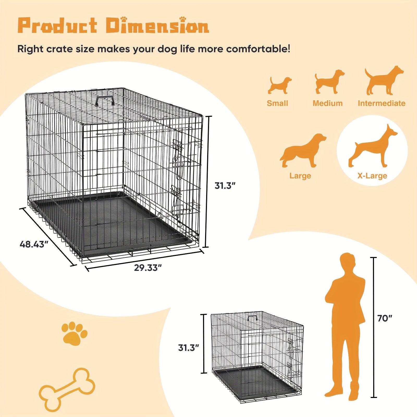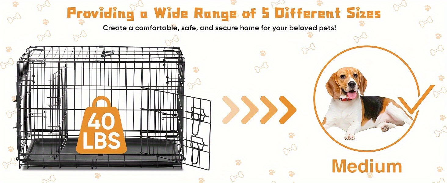 Medium Dog Crate with Double Doors, Foldable Pet Cage with Divider Panel & Removable Tray for Small to Medium Dogs - Secure & Spacious Indoor/Outdoor Crate
